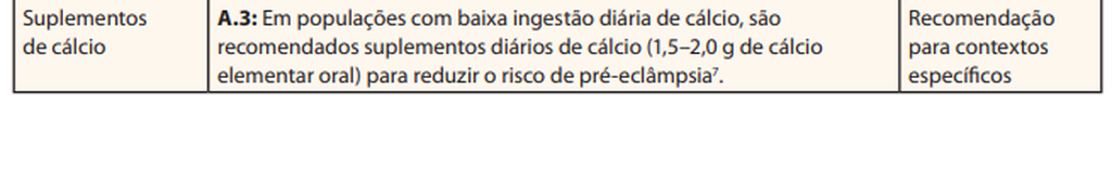 De acordo com a FioCruz, a suplementação de cálcio reduz em mais de 50% a chance de uma mulher sofrer com a pré-eclâmpsia.